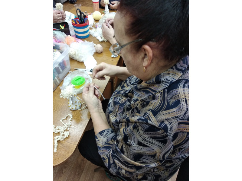 👭 Отдыхающие отделения дневного пребывания на кружке " Волшебный клубочек" изготовили игрушку - ангела.👼