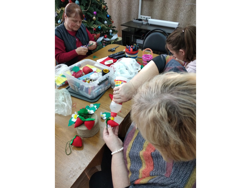 👭Отдыхающие отделения дневного пребывания на кружке "Волшебный клубочек" изготовили интерьерную композицию "Лукошко с ягодами."🧺🍓