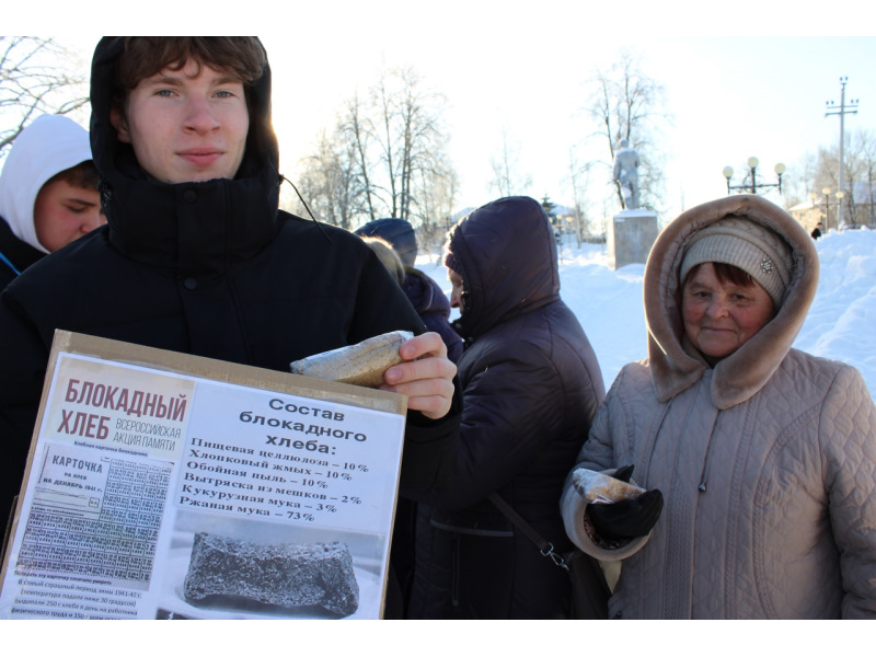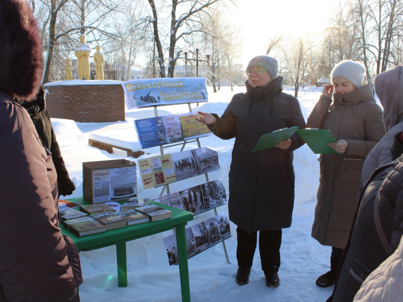 В преддверии знаменательной даты, центральная библиотека провела уличную акцию «900 дней мужества». На площадке центрального парка для всех желающих работала экспозиция «Блокадный фотоальбом» освещающая в запечатленных кадрах суровые моменты реальности окруженного вражеской армией города. Книжная выставка «Память о блокаде нам книга оставляет» представляла вниманию участников мероприятия художественные и документальные литературные произведения, в которых отражена суть мужества, стойкости, самоотверженной любви к Родине, удивительной силы духа русского народа. Ведущие рассказали о трудностях блокадного Ленинграда, зачитывали воспоминания жителей, читали стихи пронизанные эмоциями и реалиями тех страшных лет. Ребята из волонтерского объединения "В ритме жизни" распространяли буклеты с информацией о столь непростой и значительной дате, так же раздавали символические «блокадные» 125 грамм хлеба, с описанием состава этого продукта на момент самого жесткого голодного года блокады. В акции участвовали отдыхающие группы дневного пребывания КЦСОН.