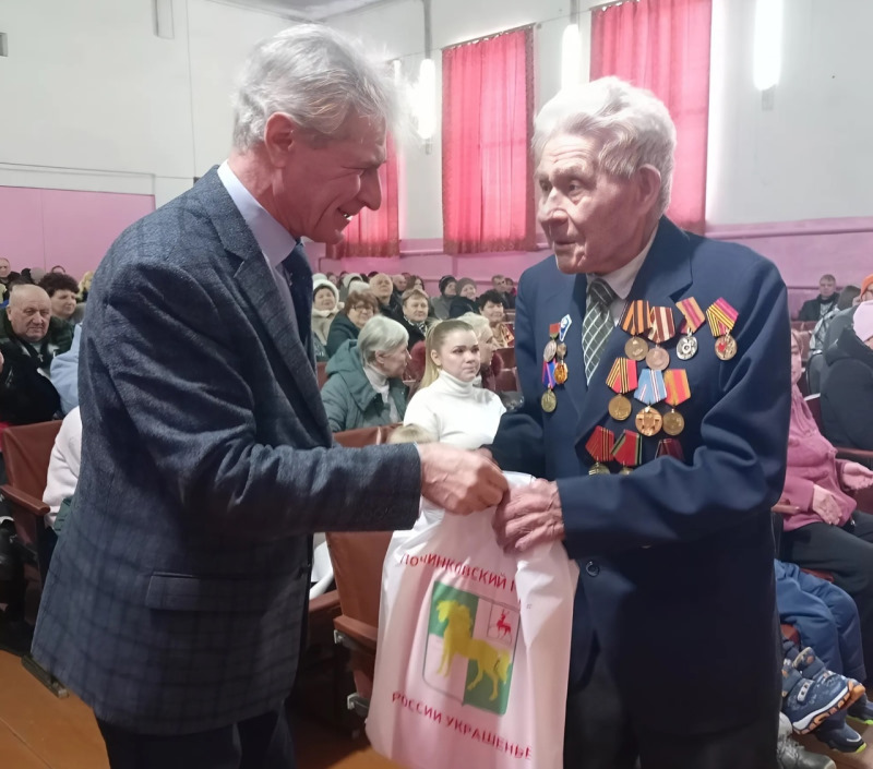 В преддверии празднования 80-летия Великой Победы, в свой 98 день рождения, поздравления и подарки принимает участник Великой Отечественной войны, житель Починковского муниципального округа Погодин Николай Александрович.