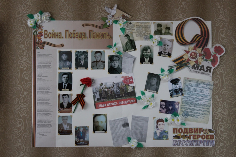 Ко Дню Великой Победы в отделении дневного пребывания оформлена тематическая фотовыставка наших земляков, которая повествует о людях, кто отстоял свободу и независимость нашей Родины. Победа в Великой Отечественной войне — подвиг и слава нашего народа!