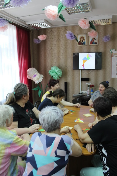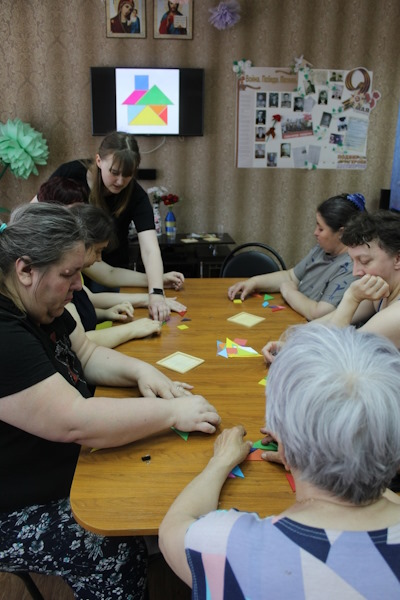 Для отдыхающих отделения дневного пребывания инструктором по трудовой терапии Кузнецовой М.С. было проведено интеллектуальное занятие танграм. Головоломки танграм развивают логическое, пространственное и образное мышление, внимание и воображение.