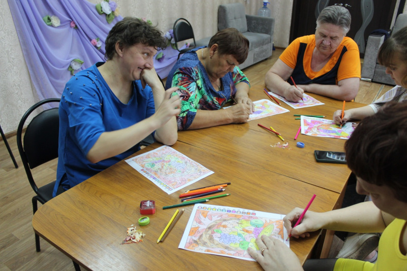 В отделении дневного пребывания для отдыхающих прошло увлекательное занятие – рисование по номерам, где получатели социальных услуг разукрашивали готовые шаблоны. Занятие рисованием или другим видом творчества значительно активизирует мозговую деятельность и способны поддерживать нормальную работу мозга в пожилом возрасте. Это занятие дарит свободу самовыражения, помогает бороться со стрессом, избавляет от переживаний, успокаивает нервы, тренирует память, раскрывает перед людьми пожилого возраста большие перспективы восстановления способностей общения в процессе труда. Художественное творчество подарило большое удовольствие!