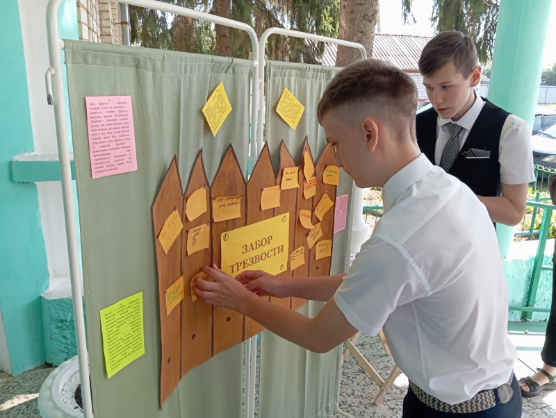 В рамках акции ребята оставили свои аргументы в знак протеста против употребления алкоголя на импровизированном «заборе трезвости», выразили свое мнение о вреде этой пагубной привычки.