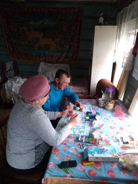 В отделении социально-бытового обслуживание на дому № 2 с. Вечкусово, социальными работниками Мариной Мурашовой и Татьяной Зотовой было проведено плановое занятие по креативному досугу с использованием арт-технологии «Изотерапия». Участниками занятия были получатели социальных услуг отделения Важдаева Екатерина Александровна и Французов Валерий Федорович. Практическая часть занятия была направлена на украшение яиц к светлому празднику Пасхи.