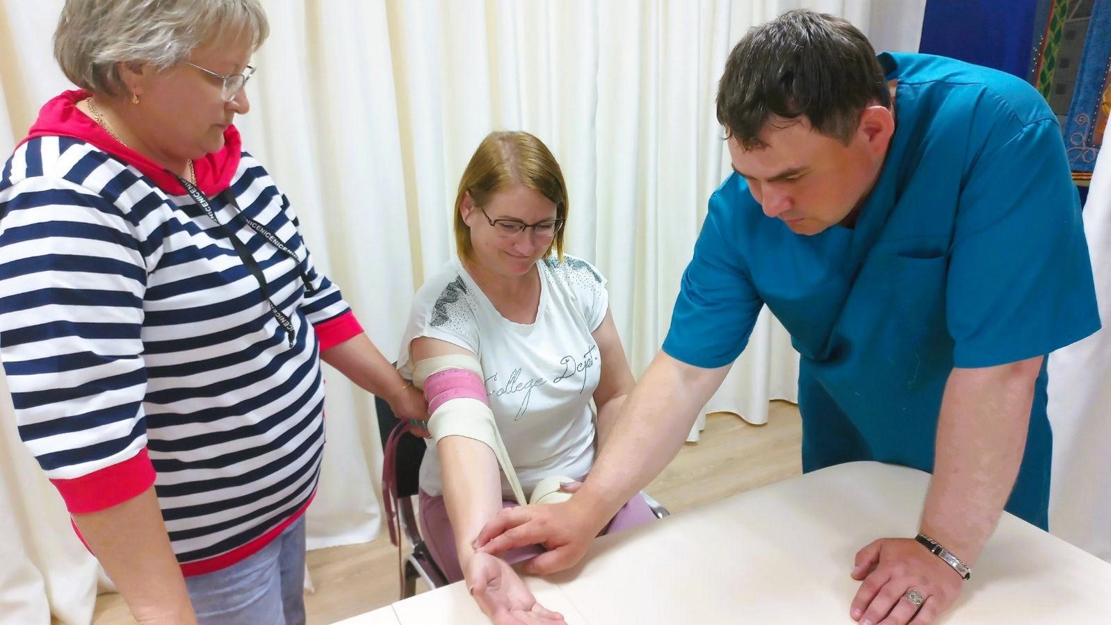 - с помощью тренажера были продемонстрированы способы проведения закрытого массажа сердца, и каждый социальный работник смог попрактиковаться в его проведении.