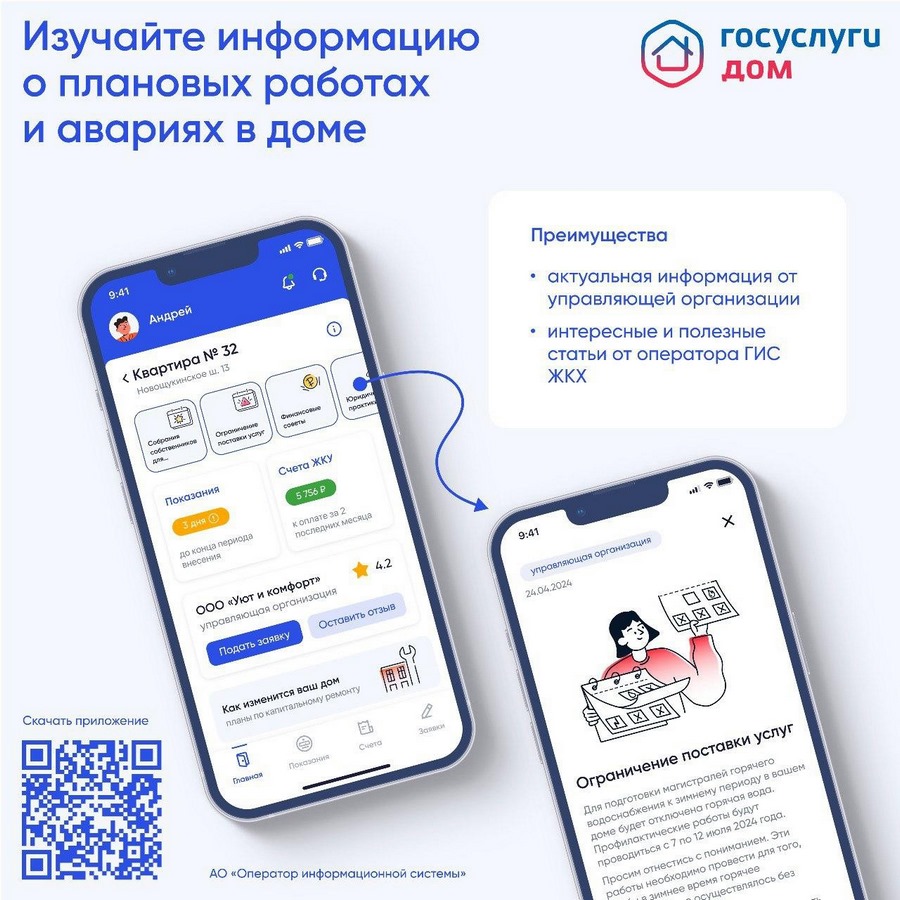«Госуслуги Дом» — это приложение для собственников жилья в многоквартирных домах. С его помощью удобно взаимодействовать с управляющей компанией и быстро узнавать о важном — например, о плановых отключениях света или авариях на теплотрассе.