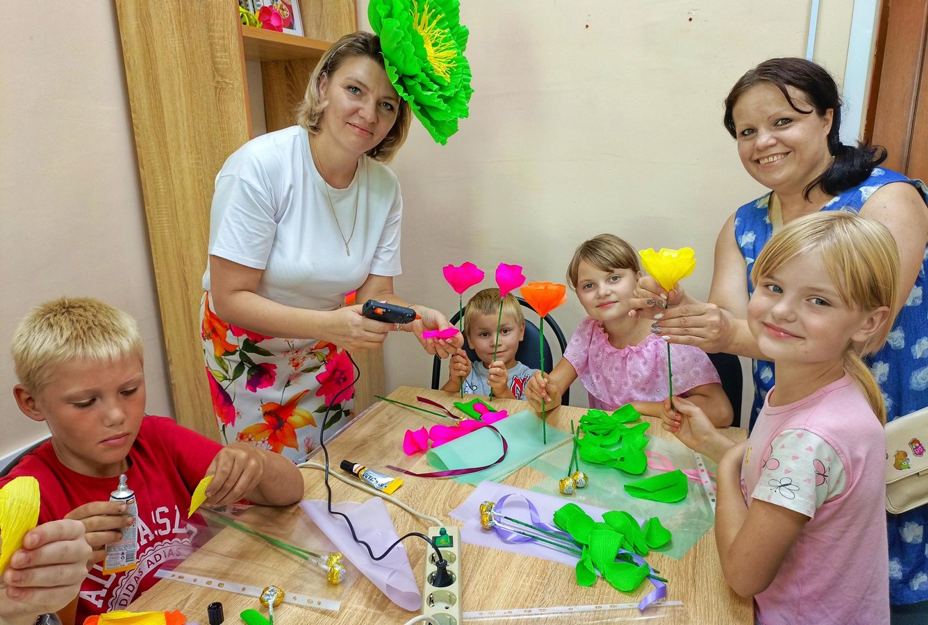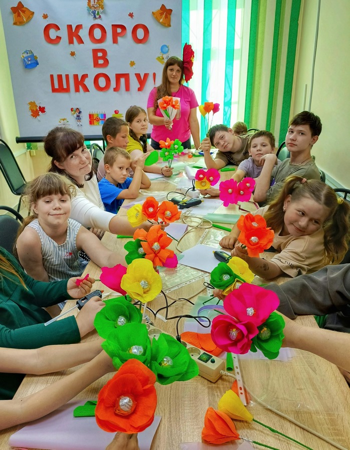 Сегодня, в чудесный солнечный день, в рамках благотворительной акции «Скоро в школу», волонтеры Центра провели красочное мероприятие «Подарок для учителя своими руками!». Были приглашены многодетные семьи Сосновского округа.