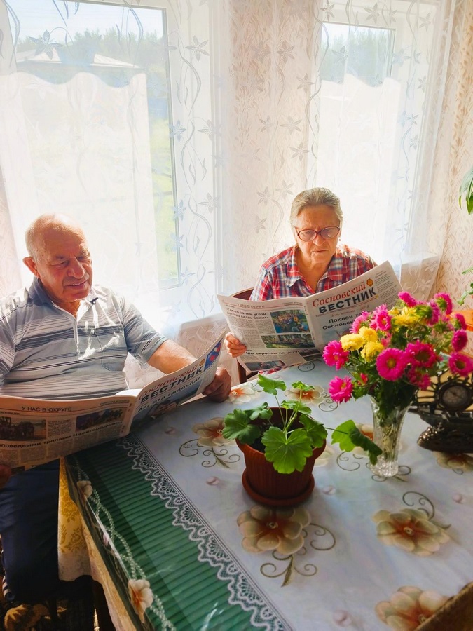 "Сосновский Вестник" всё время выписываем и читаем давно, рассказала семья Курдиных, Александр Петрович и Екатерина Николаевна. Очень хорошая и нужная газета. Нам нравится, что в каждом номере печатаются уже известные и талантливые авторы, хорошие, интересные и нужные статьи. Газета держит нас в курсе всего происходящего в районе. Приятно видеть в ней фото и материалы о своих родных, знакомых и друзьях.