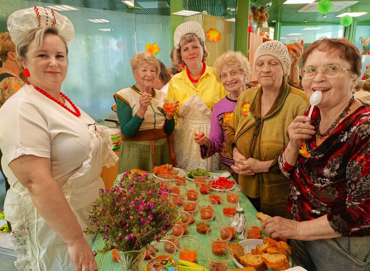 Восторг среди участников вызвала дегустация осенних заготовок «Деревенский погребок». Доброжелательные и колоритные буфетчицы угощали присутствующих разнообразными соленьями и пирогами. Гостям хотелось распробовать каждое представленное блюдо, и они не раз возвращались за добавкой. Дегустация плавно перетекла в праздничное чаепитие под душевное музыкальное сопровождение гармониста. Также на протяжении дня работала фотозона «Осень в объективе», где любой желающий мог запечатлеть себя в прекрасных осенних локациях.